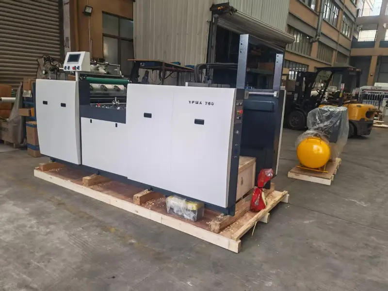 Nous emballons le YFMA-760Machine de stratification de pré-revêtement automatique, Enfin, il sera emballé dans une caisse en bois.
